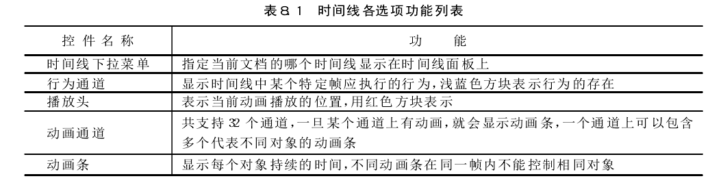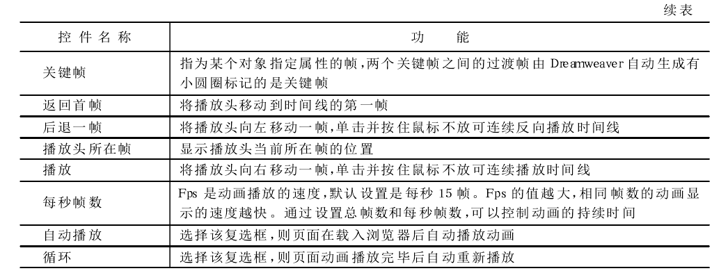 "Timeline(時間線)”面板描繪了層和圖像隨時間變化的屬性。在菜單欄中選擇“Window" →"Time lines" 命令可打開時間線面板。時間線面板所包含的控件如圖所示。