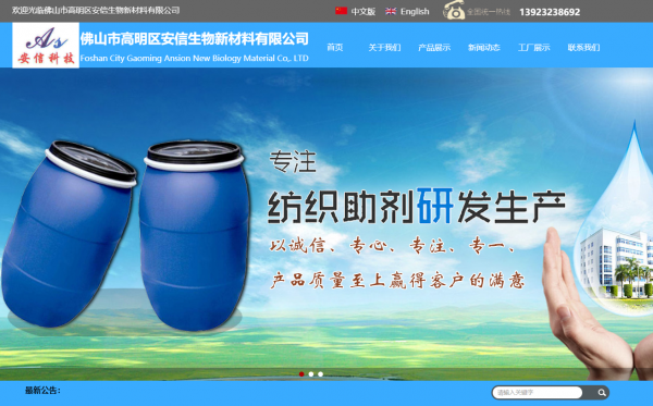 佛山市安信生物新材料有限公司,位于中國廣東佛山。 本公司經(jīng)過多年的積累、發(fā)展以及在化工領(lǐng)域的不斷探索,現(xiàn)已成為一家源于生物酶整理,代用堿、滲透劑、各種風(fēng)格手感硅油等產(chǎn)品,集研發(fā)、生產(chǎn)、 銷售、服務(wù)于一體的綜合性紡織助劑企業(yè) 。 提供節(jié)能、低耗,符合生物環(huán)保要求的紡織印染助劑、服裝水洗生物酶制劑等系列產(chǎn)品,以滿足環(huán)保要求日趨嚴(yán)格的市場。 多年來,安信科技以“以人為本,客戶至上,質(zhì)量第一,信譽至上”的原則,為客戶創(chuàng)造最大價值的營銷理念;在反思中尋找差距、在對比中趕超先進(jìn)的學(xué)習(xí)理念;貼近市場,心系用戶,換位思考,真誠服務(wù)的服務(wù)理念;為海內(nèi)外客戶提供良好的產(chǎn)品和服務(wù)