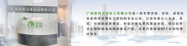 廣州菲科精細(xì)化工有限公司是一家專營洗滌、護(hù)膚、美容化妝品所需精細(xì)化工原料的專業(yè)公司。憑借努力進(jìn)取、毫不松懈的專業(yè)、敬業(yè)精神,快捷準(zhǔn)確、周到的服務(wù),公司的規(guī)模與日俱 增,迅速壯大,贏得了所有合作伙伴的信任與支持。 多年來,公司本著以人為本,務(wù)實(shí)、創(chuàng)新的經(jīng)營理念,積極開展經(jīng)營范圍及市場,現(xiàn)已經(jīng)營 多家國際知名品牌的拳頭產(chǎn)品,主要代理:韓國NFC公司水溶性神經(jīng)酰胺,水溶性植物油系列;日本艾迪科公司增稠乳化劑GT-730,黑酵母葡聚糖及無添加防腐劑等;韓國賽納真公司植物去痘、 抗炎、抗敏、豐胸、保濕系列產(chǎn)品;韓國多美來公司納米包裹脂質(zhì)體,種子萌芽新產(chǎn)品;韓 soleon公司硅處理包裹粉體,及植物提取液;黃岡永宇日用化工有限公司椰油基羥乙基磺酸鈉等低 刺激性表活;甘肅美迪林納米材料有限公司生產(chǎn)納米及系列粉體;臺灣味丹公司γ-PGA、H-80等產(chǎn) 品受市場歡迎。