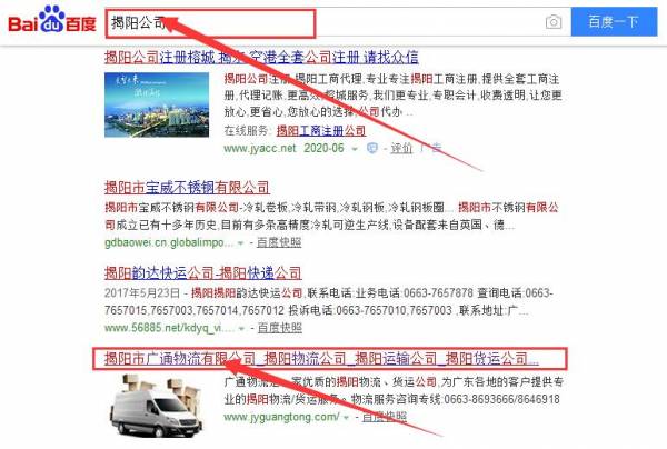 揭陽市廣*物流有限公司與我司做快速排名項(xiàng)目