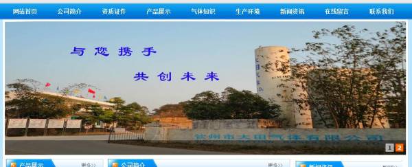 欽州市大*氣體有限公司網(wǎng)站建設(shè)展示型案例作品