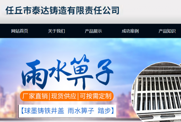 任丘市*達(dá)鑄造有限責(zé)任公司選用我司企業(yè)寵物用品網(wǎng)站案例,其網(wǎng)站建設(shè)的特點(diǎn)是生產(chǎn)、加工、銷售、安裝:球墨鑄鐵井蓋、管道配件、機(jī)械零件。用很合適的展示方式、展示效果、站點(diǎn)框架,把客戶及其用戶很關(guān)心的問題突出表現(xiàn);并以簡潔明朗的設(shè)計(jì)風(fēng)格,清晰展現(xiàn)公司水平實(shí)力,確保一秒抓住目標(biāo)用戶眼球,給用戶留下良好的第一印象。任丘市*達(dá)鑄造有限責(zé)任公司成立于2003年,是經(jīng)任丘市市場監(jiān)督管理局審核的有資質(zhì)的公司,其統(tǒng)一社會信用代碼:911309827554853**3。公司地址:任丘市石門橋鎮(zhèn)工業(yè)區(qū)。