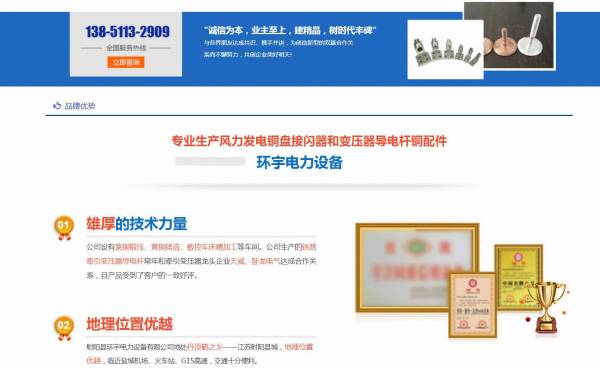 射陽縣*宇電力設(shè)備有限公司選用我司企業(yè)機(jī)械設(shè)備行業(yè)的網(wǎng)站優(yōu)化產(chǎn)品,其SEO關(guān)鍵詞有 射陽縣*宇電力設(shè)備有限公司。其特點(diǎn)是用很合適的展示方式、展示效果、站點(diǎn)框架,把客戶及其用戶很關(guān)心的問題突出表現(xiàn);并以簡(jiǎn)潔明朗的設(shè)計(jì)風(fēng)格,清晰展現(xiàn)公司水平實(shí)力,確保一秒抓住目標(biāo)用戶眼球,給用戶留下良好的第一印象。射陽縣*宇電力設(shè)備有限公司成立于2006年,是經(jīng)射陽市市場(chǎng)監(jiān)督管理局審核的有資質(zhì)的公司,其統(tǒng)一社會(huì)信用代碼:9132092**95357950H。公司地址:鹽城市射陽縣合德鎮(zhèn)運(yùn)棉村二組68號(hào) 。