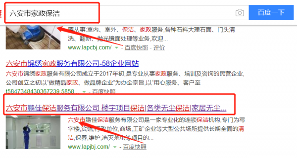 我們公司與六安市鵬佳保潔服務(wù)有限公司合作中,對(duì)這個(gè)公司所經(jīng)營的家政保潔這個(gè)行業(yè)提供了快速排名,與該公司的合作,更多的客戶讓我們公司為其提供快速排名,通過每一次合作,我們公司不斷完善自己,同時(shí)希望合作伙伴在經(jīng)營的路上越來越好。