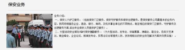 福建省南安*榮保安有限公司選用我司企業(yè)保安公司行業(yè)的網(wǎng)站優(yōu)化產(chǎn)品,其SEO關(guān)鍵詞有福建省南安*榮保安有限公司。其特點(diǎn)是用很合適的展示方式、展示效果、站點(diǎn)框架,把客戶及其用戶很關(guān)心的問題突出表現(xiàn);并以簡潔明朗的設(shè)計(jì)風(fēng)格,清晰展現(xiàn)公司水平實(shí)力,確保一秒抓住目標(biāo)用戶眼球,給用戶留下良好的第一印象。福建省南安*榮保安有限公司成立于1993年,是經(jīng)南安市市場(chǎng)監(jiān)督管理局審核的有資質(zhì)的公司,其統(tǒng)一社會(huì)信用代碼: 91350583156335**6J。公司地址:福建省南安市帽山工業(yè)區(qū)宏發(fā)石材對(duì)面(原對(duì)外經(jīng)貿(mào)學(xué)校舊址)。