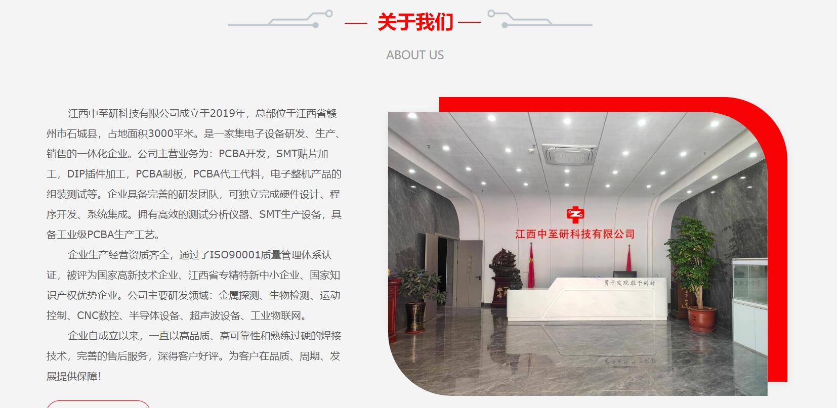 江西中至研科技有限公司成立于2019年,總部位于江西省贛州市石城縣,占地面積3000平米。是一家集電子設(shè)備研發(fā)、生產(chǎn)、銷(xiāo)售的一體化企業(yè)。公司主營(yíng)業(yè)務(wù)為:PCBA開(kāi)發(fā),SMT貼片加工,DIP插件加工,PCBA制板,PCBA代工代料,電子整機(jī)產(chǎn)品的組裝測(cè)試等。企業(yè)具備完善的研發(fā)團(tuán)隊(duì),可獨(dú)立完成硬件設(shè)計(jì)、程序開(kāi)發(fā)、系統(tǒng)集成。擁有高效的測(cè)試分析儀器、SMT生產(chǎn)設(shè)備,具備工業(yè)級(jí)PCBA生產(chǎn)工藝。