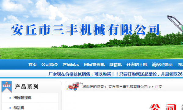 安丘市三豐農(nóng)機(jī)制造有限公司與本司簽約網(wǎng)頁開發(fā)項目