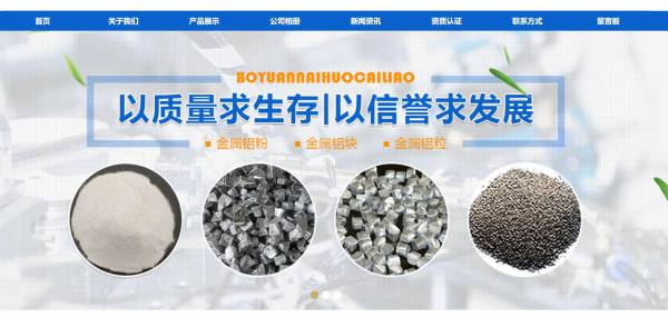 尉氏縣*遠(yuǎn)耐火材料廠選用我司企業(yè)金屬制品行業(yè)的網(wǎng)站優(yōu)化產(chǎn)品,其SEO關(guān)鍵詞有 尉氏縣*遠(yuǎn)耐火材料廠,金屬鋁粉,金屬鋁粒,超細(xì)鋁粉,金屬鐵粉,鐵丸,金屬鈣粒。其特點(diǎn)是用很合適的展示方式、展示效果、站點(diǎn)框架,把客戶及其用戶很關(guān)心的問(wèn)題突出表現(xiàn);并以簡(jiǎn)潔明朗的設(shè)計(jì)風(fēng)格,清晰展現(xiàn)公司水平實(shí)力,確保一秒抓住目標(biāo)用戶眼球,給用戶留下良好的第一印象。尉氏縣*遠(yuǎn)耐火材料廠成立于2006年,是經(jīng)尉氏市市場(chǎng)監(jiān)督管理局審核的有資質(zhì)的公司,其統(tǒng)一社會(huì)信用代碼:91410223**8093360B。公司地址:河南省開(kāi)封市尉氏縣工業(yè)園區(qū)。